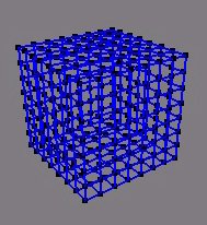 The points with i=0 or i=7 or j=0 or j=7 or k=0 or k=7 are the points on the boundary of the cube. We will call these point surface points, since they define the surface of the jello cube. There are a total of 296 surface points. The surface of the cube can be rendered by drawing triangles connecting the surface points. The complete OpenGL code to do the cube rendering is provided in showCube.cpp. Interior points are not necessary for rendering, as they are invisible. They are, however, necessary for simulating physics.
